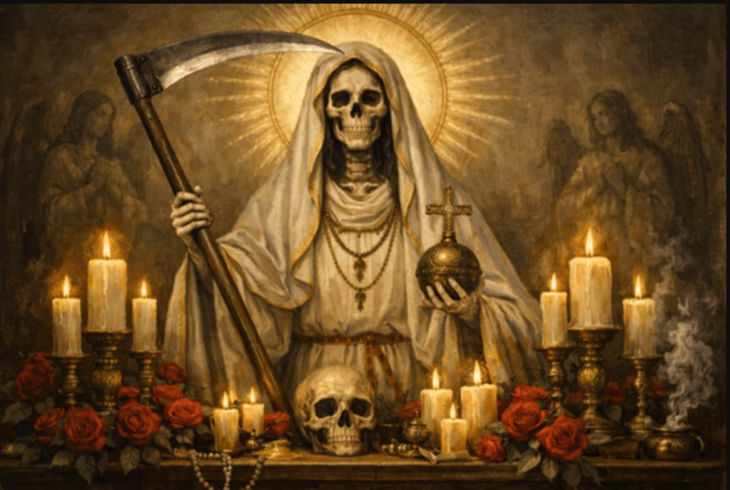 The death cult of Santa Muerte appears briefly in TV and movie cartel/crime stories, like AMC’s Breaking Bad and Better Call Saul, as a powerful, ambiguous figure related to death, protection, or dark forces. There are even darker programs, such as the 2022 film Santa Muerte or the Penny Dreadful: City of Angels series, where she’s a major character. Within film and TV, her portrayal varies, from a narco-saint aiding drug lords to a more neutral psychopomp guiding souls, reflecting her complex role in popular culture as a folk saint for the marginalized and dangerous. But why should we care? This is just entertainment, right?